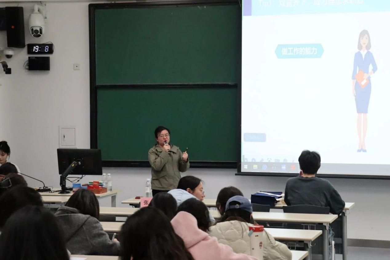 张欣学姐有多年的人力资源咨询工作经验,她结合自己从私企到央企的工作经历,系统阐述了职业规划的核心要素、以及在校期间应重点提升的职场通用能力,也为同学们推荐了一些专业的职业发展测评方法,帮助同学们更好地明确求职方向。