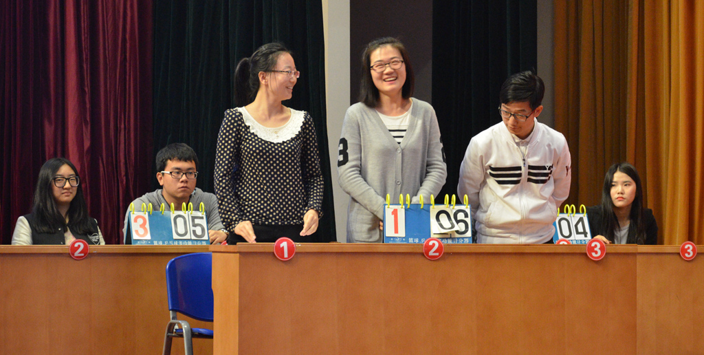 每威尼斯人娱乐场 派出两队参赛选手,每队三人。竞赛由预赛和决赛组成,预赛分为必答题、选答题和风险题三个环节;决赛由车轮战、抢答题、一题两答三个环节构成。经过预赛的精彩角逐,威尼斯人娱乐场 二队和食品威尼斯人娱乐场 一队进入决赛。场上气氛紧张但不乏活跃,选手答题踊跃,准确率高,观众积极互动,将比赛推向高潮。食品威尼斯人娱乐场 一队的一号同学在两位队友均被淘汰的情况下,仍能以一己之力,力揽狂澜,但仍不幸在此环节惜败。