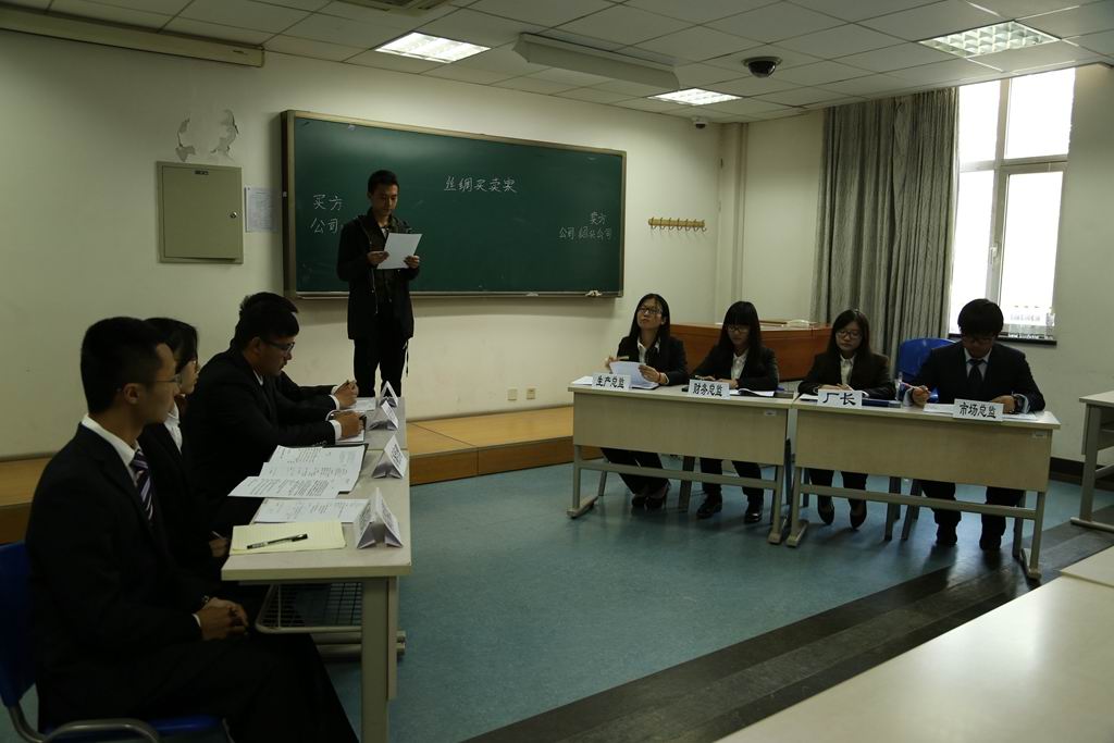 此次初赛比赛规则是同学随意组队,采取两两对战的形式,在相同的商业背景下,双方分别代表买卖双方进行商务谈判,以求达到自己的最终商业目标。比赛胜负由比赛评委打分的加权平均得出,并现场宣读结果,胜者直接晋级。