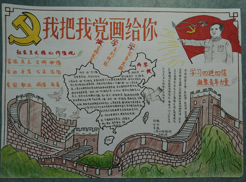 为弘扬社会主义核心价值观,深入贯彻落实“两学一做”的有关精神,4月,威尼斯人娱乐场 学生党建工作委员会举办了“我把我党画给你”主题画报比赛。