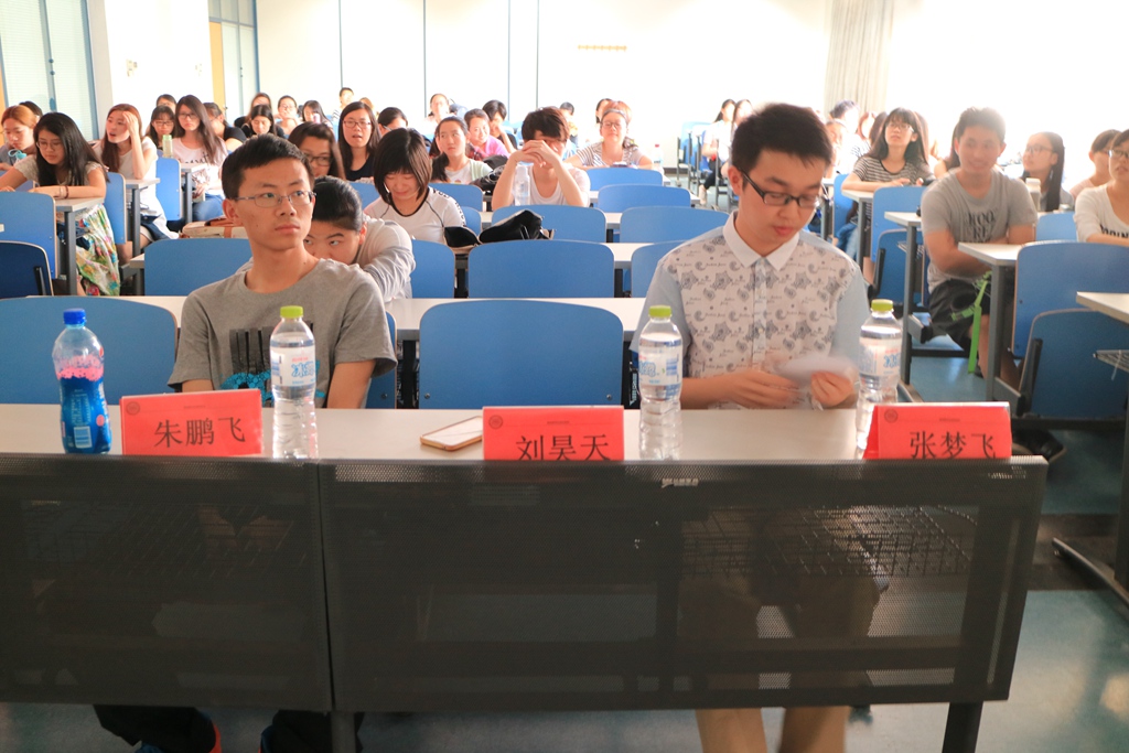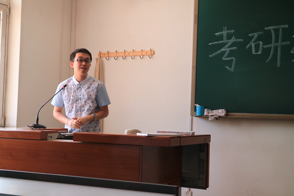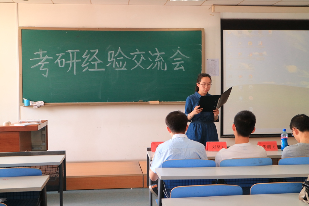 辅导员寇明雯老师组织举办、社团部协办的考研经验交流会于科研楼103室顺利开展。14级辅导员寇明雯老师出席了此次活动。此次交流会非常荣幸地请到了朋辈讲师张梦飞、刘昊天、朱鹏飞,他们分别考入了中国财政科学研究院、北京工商大学、北京理工大学的研究生。