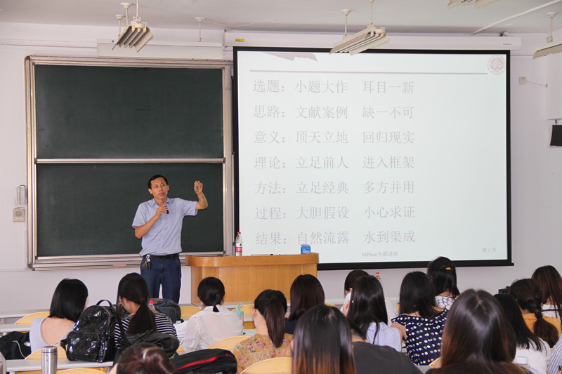 要求、贴近近年论文成败、贴近研究生的实际需求。大部分学生反映本次讲座非常及时、非常解渴、受益良多,研究生通过此次讲座更加清晰了解了论文的选题要点和写作要求,希望多开设此类讲座以答疑解惑、提升案例研究水平。