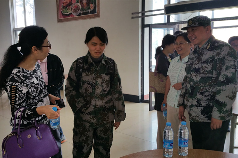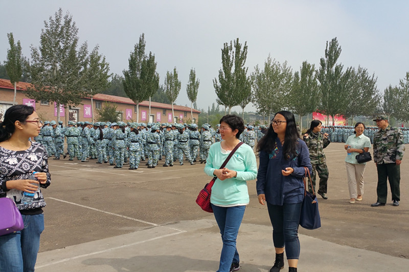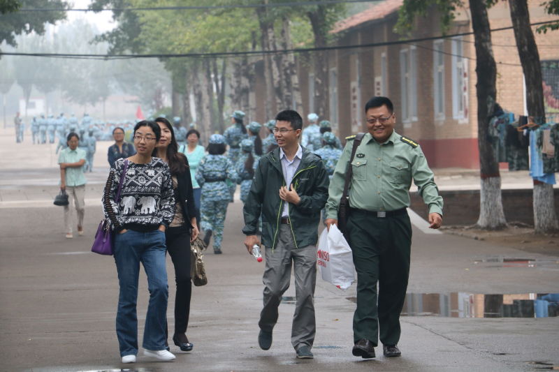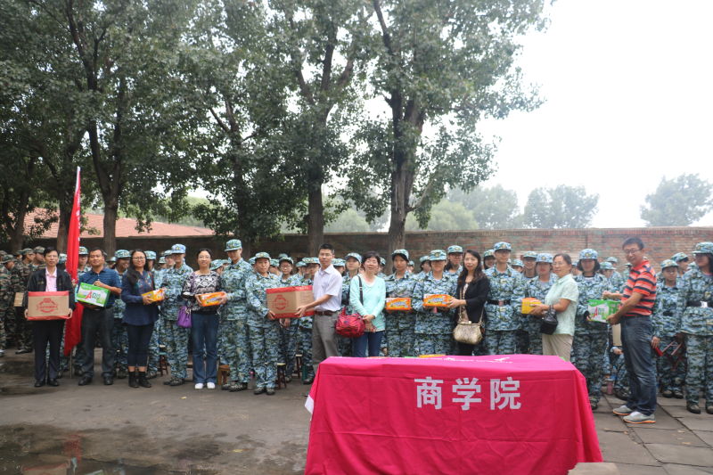 党委副书记樊江涛、副院长毛新述、工商管理系主任曹正进、16级班主任支春红、苏峻、王仲兵、毛新述、任晨煜、蒯鹏州、冯颖如、崔丽长途驱车到康庄军训基地看望慰问2016级参训学生和军训教官。