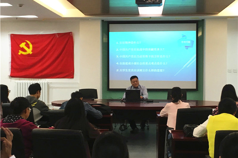 新生党员要坚持“两学一做”的学习并且不断的开展红色“1+1”等相关活动,将“两学”与“一做”与群众路线结合起来,不断丰富自身的理论水平,在学习的过程中不断加深自身的党性修养。樊江涛副书记最后对于2016级新生党员在日后的学习发展中给出了三点建议:一要树立为人民服务的世界观,二要树立奋发有为的人生观,三要树立创业奉献的价值观,身为一名党员要时刻牢记党的宗旨,打造党员先锋模范作用。