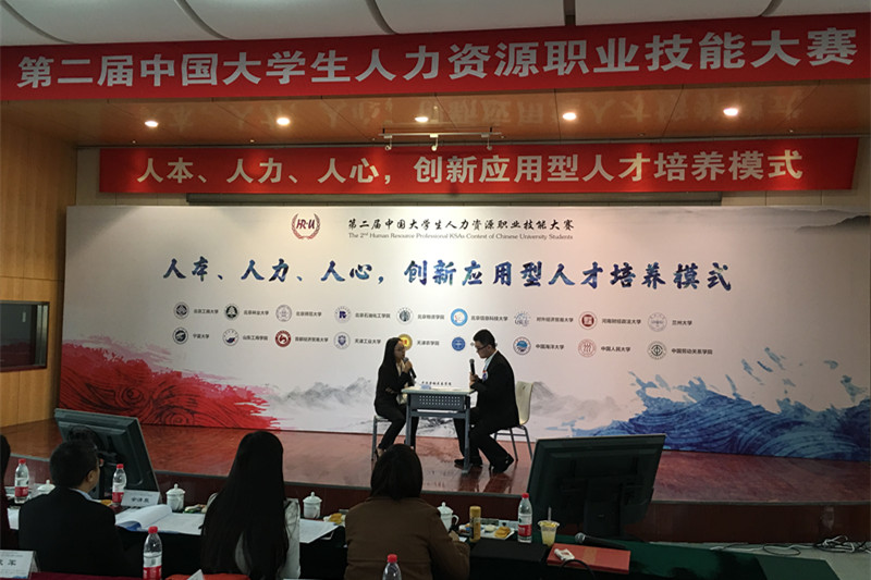 11月26日,以“人本、人力、人心,创新应用型人才培养模式”为主题的第二届中国大学生人力资源技能大赛在中国劳动关系威尼斯人娱乐场 胜利召开。有来自全国各地共十八所高等院校的人力资源专业大学生参加了本次大赛。环球网、央广网、人民网、新华网等对本次大赛进行全程网络直播。我院学子在何辉老师、王长斌老师、武晓宇老师的组织与指导下,参加了本次大赛全部四项比赛环节以及一站到底答题、英文演讲等团队加分环节。