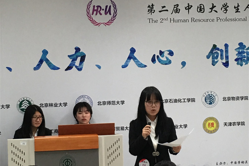比赛前,四位参赛选手从学校风采展示制作到比赛内容研究都进行了积极的准备。在指导教师的辛勤指导下,选手们赛出学识与风格,展现了北京工商大学学子的风采。其中冯昌禄同学在职场实战比赛中获得二等奖,高伯阳和吕雅丹同学分别在人力资源实务设计比赛和案例分析比赛中获得三等奖,李嘉欣同学在无领导小组讨论比赛中获得优秀奖第一名。北京工商大学团队获得本次大赛团体优秀奖。大家纷纷表示,通过本次大赛的锻炼学到了很多,为自己今后的学习与工作生活提前练兵,也为日后人力资源管理理论知识的深入挖掘与实际职业技能操作的结合提供了方向。