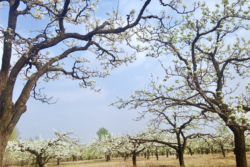琉璃河镇自古就有“京南梨乡”之称,这里的京白梨大家族主题公园是一片百年梨树园,种植面积超过万亩,是华北地区最大的一片百年梨园。树龄最长在300年以上,最粗的直径有80多厘米,园中有各种老梨树17000余棵,共计3000多亩。树形美观,枝叶茂盛,且布局错落有致。走入梨园,枝头上一片银白,枝干苍郁,花朵莹润,素洁中别有一番清丽。