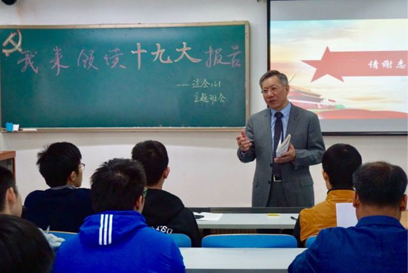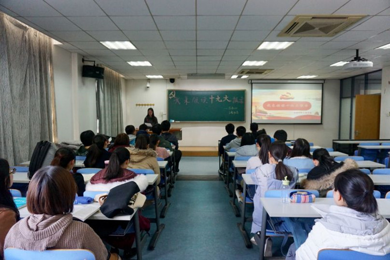 最后,谢志华副校长为同学们上了一堂别开生面的十九大微党课。首先,他肯定了同学们对十九大的理解和思考非常透彻,并要求同学们要做学习宣传贯彻十九大精神的“排头兵”,进一步深入全面理解十九大精神,把十九大精神学习好、领会好、贯彻好。其次,他指出,同学们要身体力行践行十九大精神,坚定理想信念,志存高远,脚踏实地,要扣好人生的每一粒扣子,真正做到勤学、修德、明辨、笃实。最后,他从学习和责任两个方面对同学们提出了要求和希冀。他希望同学们能够规划自己未来的发展,努力学习,服务社会,早日肩负起实现中华民族伟大复兴的中国梦的重任,继往开来,不负使命。