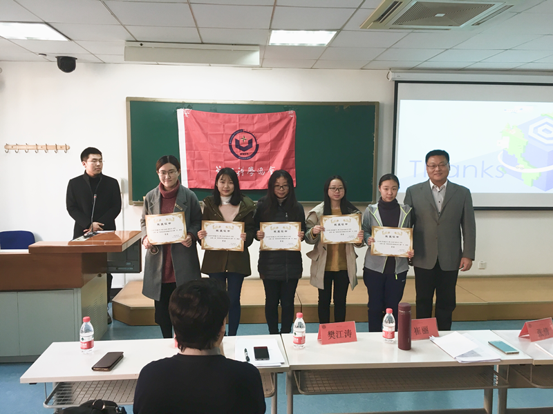 根据最终得分,溜溜哒团队获得一等奖、双王中石团队和胜利考拉团队获得二等奖、Data master团队和勇往直前四人组团队获得三等奖。樊江涛副书记和三位评委老师为各队伍轮流颁奖。