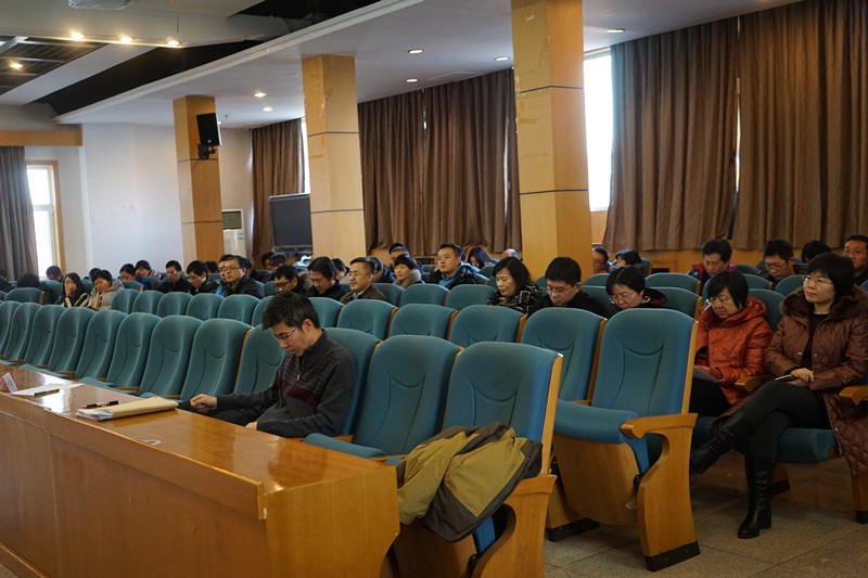 在综合楼三层报告厅召开2018年第一次全体教职工大会,大会由王国顺院长主持。