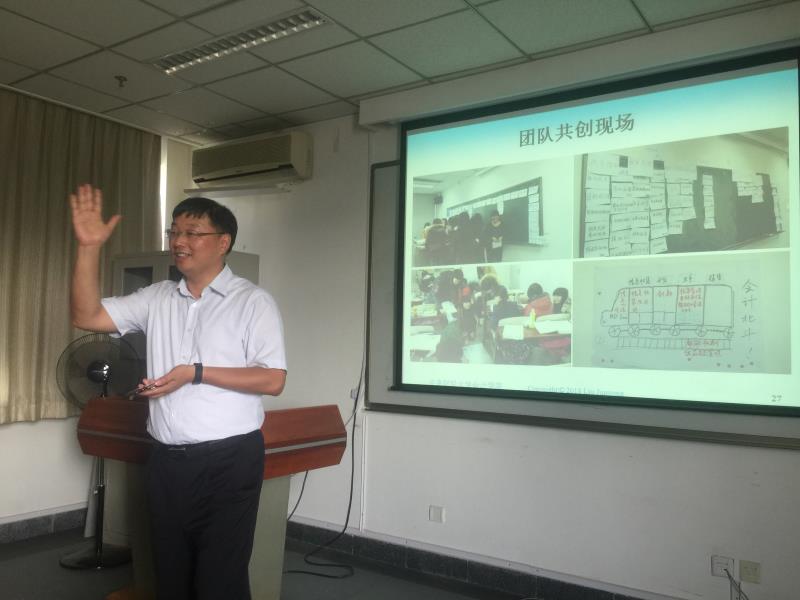 党委书记刘俊勇教授做了一次教学演示。刘俊勇教授是北京市教学名师、全国教育教学成果奖获得者,他教学演示的主题是“基于行动学习法和云教学平台的教学方法”。基于蓝墨云班课APP,刘教授现场演示了如何使用云平台上好一节课、如何提升学生的学习投入和学习兴趣、如何进行学生云平台分组和组内学生教学效果的实时反馈、如何进行课程测验、如何进行课程总结等内容。刘教授认为,要让学生记住内容、投入课堂,就需要对教学方法进行创新,要让学生在团队协作与参与行动中实现知识的构建。他通过十年时间,探索提出了课堂教学中的行动学习法,他通过运用其中具体的团队共创法和ORID法,让老师们体会和理解如何实现学生的自主学习、自我创造、自我提出问题、自我总结问题的全新教学方法和教学实践,他还现场播放了自己制作的视频案例,介绍了视频案例的背景、过程和效果。