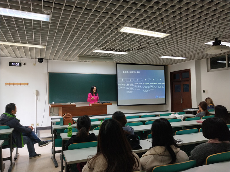 11月7日下午,中国旅游研究院吴丽云研究员应我校旅游管理专业邀请,为工商管理大平台的17级和18级本科生做了《告诉你一个不一样的“新旅游”》讲座。吴研究员通过四新全面介绍了新时代中国旅游的新变化和新趋势,讲座信息量大、时效性强,重塑了我校师生对旅游业的认知。最后,还结合自身的发展,与学生共同畅谈了旅游职业选择和规划。旅游专业负责人张运来副教授和侯晓丽副教授一同聆听了讲座。本周六上午(9:00-11:00),旅游管理专业将联合MBA中心邀请维也纳酒店集团大区开发总经理李刚为师生做《中国旅游集团发展现状与战略的研究》(综合楼501)报告。本月底将邀请中国人民大学王琪延教授为大家做《推动休闲产业转型升级研究》报告,热烈欢迎教师、研究生、MBA参加。