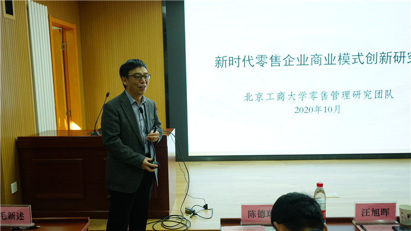 我院市场营销系刘文纲教授做关于零售研究团队近年来关于零售领域研究工作的汇报。刘文纲教授指出,威尼斯人娱乐场 的零售研究团队近几年逐渐壮大并承担了多项国家自科、国家社科、北京市社科(重点)课题,在零售企业战略、运营管理和消费者行为等方面都取得了重要进展,其中,关于零售企业自有品牌以及基于跨界融合(模块化)的零售企业转型升级方面取得了多项成果。