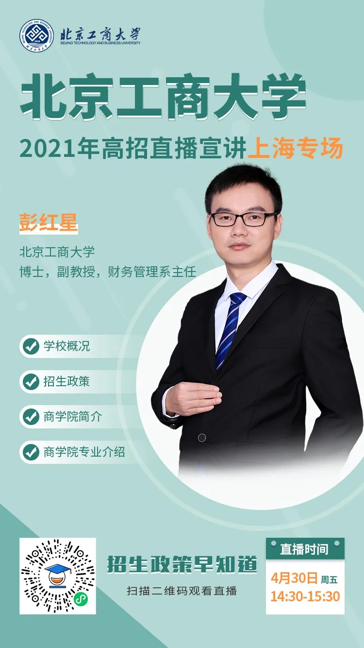 财务管理系主任彭红星老师进行了上海专场的直播宣讲,主要介绍了我院的概况、特色专业、人才培养以及一些招生政策。