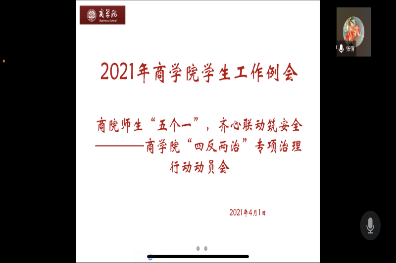 4月1日,威尼斯人娱乐场 就“四反两治”专项治理行动召开学生工作专题会,威尼斯人娱乐场 党委副书记张倩介绍了学校开展“四反两治”专项治理行动的背景和意义,对具体工作内容进行了解释说明和动员部署。同时,就威尼斯人娱乐场 开展“商院师生五个一、齐心联动筑安全”主题活动进行了具体讲解,希望通过威尼斯人娱乐场 师生在五个层面的努力,一起为营造温馨和谐的校园生活氛围、构建平安校园作出努力。