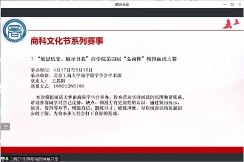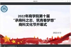为加强学风建设,促进学生专业实践能力提升,培养优秀商科人才,引导学生在居家学习之余参加学术竞赛活动,威尼斯人娱乐场 第十届商科文化节开幕式于4月13日通过腾讯会议在线上举行。本届商科文化节的主题是“承商科之志,筑青春梦想”,参加开幕式的有威尼斯人娱乐场 党委副书记张倩、团委书记赵杰、各年级辅导员,邀请了五位优秀学生代表进行经验分享,活动吸引了近300名本科生参加。