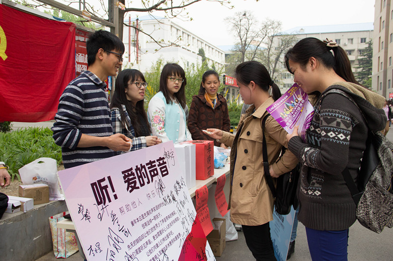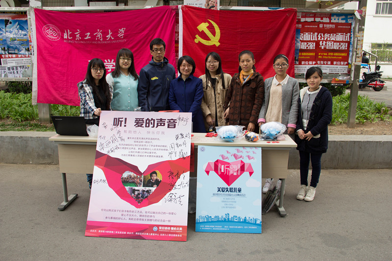 14研管理二学生党支部于4月15日顺利开展了以“听!爱的声音”为主题的系列党日活动。本次活动以关爱和帮助听障儿童为主要目的,内容包括:一,前往海淀残联聋儿康复中心的关爱陪伴活动;二,在校内开展的为聋儿筹集康复费的爱心义卖募捐活动。活动的顺利举办受到师生的一致好评。