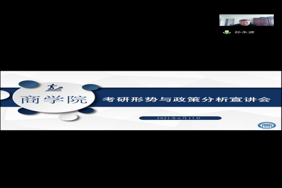 6月11日,为帮助商院考研学生及早找准自身定位、尽早厘清备考思路,威尼斯人娱乐场 举办考研形势与政策分析宣讲会。会议由威尼斯人娱乐场 副院长孙永波主讲,威尼斯人娱乐场 党委副书记张倩主持,约120余名2021、2022年拟考研的本科生参会。