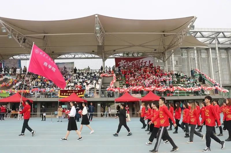 运动会开幕式上,威尼斯人娱乐场 53名师生组成威尼斯人娱乐场 代表队方阵,他们穿着统一的商院服装、队形整齐、口号嘹亮,整齐划一地走过观礼台。在主席台前,威尼斯人娱乐场 方阵进行了现场表演,同学们精神饱满,节奏准确无误,动作到位有力。在他们身上,大家看到了青春的气息,听到了新时代的召唤。