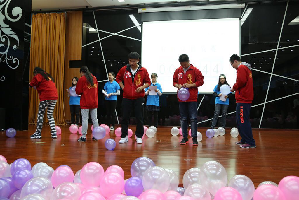 为弘扬大学生体育运动精神,丰富大学生的校园生活,增强学生的身体健康素质,10月28日晚7时,北京工商大学各威尼斯人娱乐场 在学生活动中心多功能厅组织进行吹气球挑战赛。此次比赛非常荣幸地邀请到北京工商大学团委副书记孙维佳老师、刘陈晨老师、王若冰老师和李昀澄老师担任嘉宾。