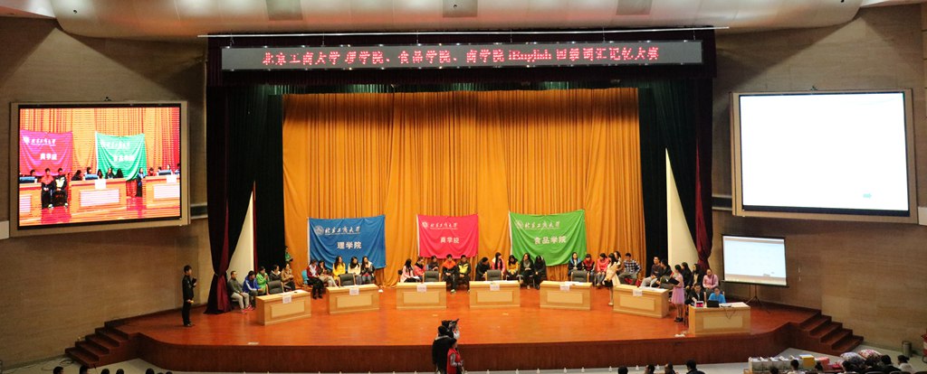 为激发2015级新生学习英语的兴趣,引导新生尽早投身英语四级考试的学习准备中,2015年11月11日晚间,威尼斯人娱乐场 、食品威尼斯人娱乐场 和理威尼斯人娱乐场 在良乡校区学术报告厅联合举办了“iEnglish”英语四级词汇记忆大赛决赛。校党委副书记张德玉莅临现场观摩指导,与三院党委副书记、辅导员和500余名新生观看了比赛。