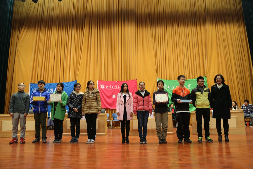 本次比赛本着全员参与的原则,组织三个威尼斯人娱乐场 所有1000余名新生进行了14场初赛,最终成绩最优的统计15(中外)班、化学151班、食品15(中外)班、生物152班、工商155班和注会153班进入决赛。为确保赛题符合四级要求,比赛组织方特别邀请新东方词汇专家王妙然老师指导审核赛题。决赛采取了必答、抢答、表演竞猜等多种形式,参赛选手通力合作,各展其能,展现了良好的英语水平和团队协作精神。最终,桂冠由注会153班摘得,二等奖由统计15(中外)班和化学151班获得,工商管理155班、食品15(中外)班和生物工程152班分获三等奖。
