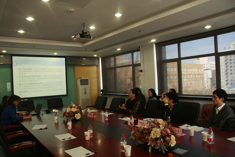 首先,朱蓉老师给我们介绍了制度合法性对企业社会责任战略及绩效的影响研究,朱老师由一个模型出发,提出了制度合法性对企业社会责任战略及绩效的影响机制,进而提出了该课题拟解决的关键问题及创新之处。孙宝文教授对该题目提出异议,并建议通过详细的文献综述来找出问题。邓春平教授也建议找一个更好的落脚点。随后,李宁老师给我们介绍了B2C环境下顾客参与价值共创驱动机制研究,李宁老师从研究目标出发,提出了基于互动模型的顾客参与价值共创框架图。孙宝文教授认为该研究课题的问题导向不清,建议进一步明确研究的问题。接着,杨阳老师给我们介绍了基于经理自主权视角的中国企业海外投资进入战略整合研究,杨阳老师从目前的研究现状出发,引入经理自主权的理论视角,重点围绕海外进入模式的选择提出了新的概念模型。之后,周燕老师给我们介绍了组织文化的个体转化机制研究,周燕老师从研究现状及研究意义出发,主要研究组织认同在组织文化个体转化中的作用、组织文化吸引力与组织认同及组织沟通在组织文化吸引力与组织认同关系间的中介作用,提出了本课题的研究思路及研究方法。金冬梅老师给我们介绍了组织伦理气氛对组织承诺、员工周边绩效的影响研究,金冬梅老师从研究的目的和意义、研究的依据及模型、研究的思路和方法、研究的创新和价值及研究的计划和预期五个方面进行了阐述。李春玲老师给我们介绍了高校教师绩效薪酬对工作卷入度的抑制机制研究,李春玲老师认为目前针对高校的绩效薪酬研究较少,提出了薪酬考核新的方式。以上几位老师阐述之后,另外老师向孙宝文教授请教如何选有意义的题目,以及选什么样的题目适合申报国家社会科学基金、什么样的题目适合申报国家自然科学基金。孙宝文教授以一些有趣的生活事例为各位老师作了解答,孙宝文教授告诉我们社会科学研究的是具体的管理问题,而自然科学是在方法上的创新。