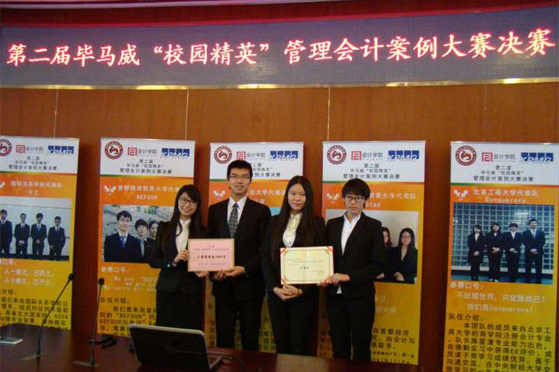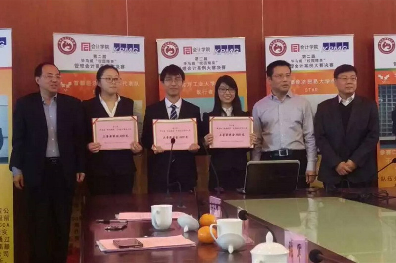 近日,2015年第二届毕马威“校园精英”管理会计案例大赛决赛在首都经济贸易大学落下了帷幕。由北京市财政局会计处副处长、知名管理会计专家以及毕马威华振会计师事务所的合伙人组成专家评审团,在来自全国各高校的近百支本科生与研究生队伍中,优中选优,选出10名队伍进入决赛。我校学生代表队在决赛中获得第五名的成绩,荣获三等奖。